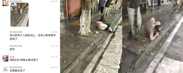 接下来将见证到最性压抑的时刻,四川乐山张公桥附近,一名醉酒男子躺在路边失去意识,直到第二天被人叫醒,最难绷的是被发现的时候,裤子已经被脱了。。。。