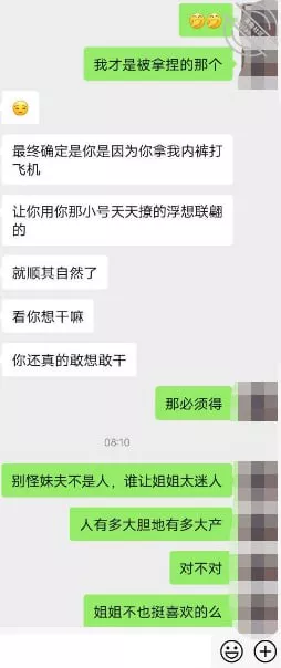 我也没想到大姨子是真的这么反差….也没料到背地里跟换了个人一样,太搔了!之前拿小号加上大姨子的时候,其实我心里面多多少少都有底,能接受陌生男人的添加,并且一开始就能聊到离婚上,我当时就觉得大姨子可能没有平日里那么端庄….
