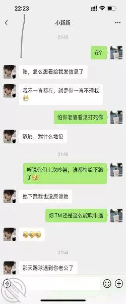 我记得很清楚,本来计划是第二天一起去酒店,我在楼下等着,他们上去Cao,干的时候给我拍视频,老婆也很爽快的答应了,结果3号的晚上在家的时候,老婆去洗澡去了,我突然发现前男友给老婆发消息说要跳过我,他们自己约,不想拍视频,老婆在聊天记录里先开始不愿意,后来她前男友一直说,不拍视频放得开啊什么的,还说能硬的更大,Cao的更爽啊,我他妈看了气不打一处来!!!!!妈的,这我能忍?我把老婆叫到我面前,我问她怎么回事?老婆看着我说就是那样说说,没同意。我一句话没吭,直接把那狗货删了,老婆也没说话的拿过手机