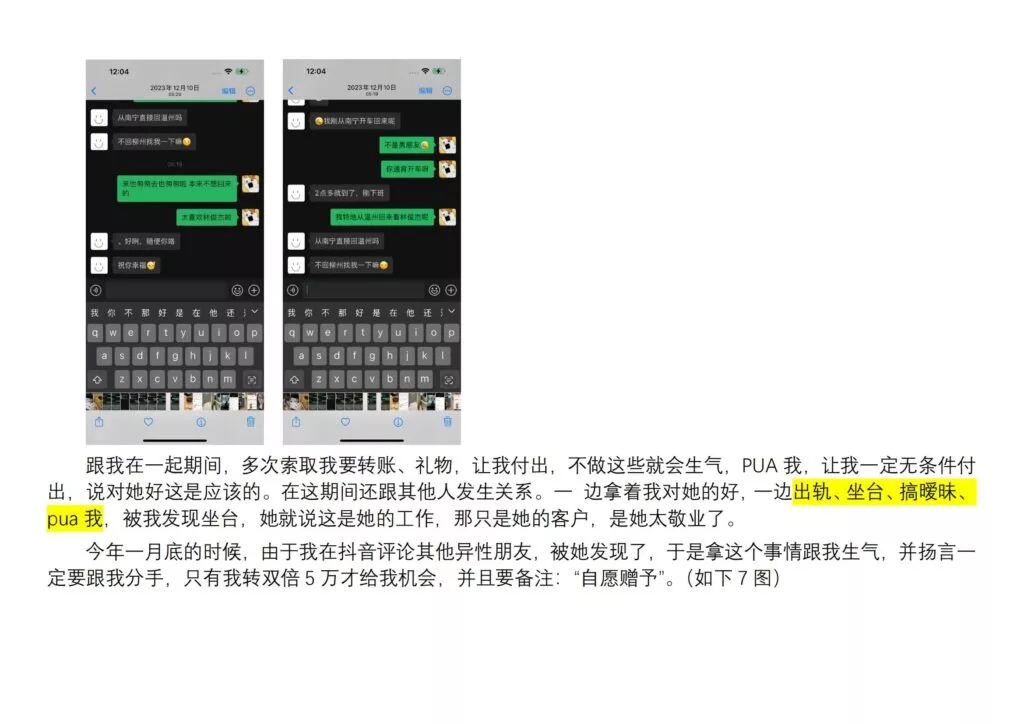 柳州的顶级海后Q小姐覃海美,长期以来对其富二代男友进行Cao控,成功骗取金钱高达60万元。在此期间,她不仅利用男友的财富,频繁与多名男性保持不正当关系,还因此感染了性病,并进行了打胎。然而,她并没有停止对男友的Cao控,直到男友最终觉醒,意识到她的不堪,痛心疾首地撰写了一份长达55页的PPT,以曝光其渣女行径。