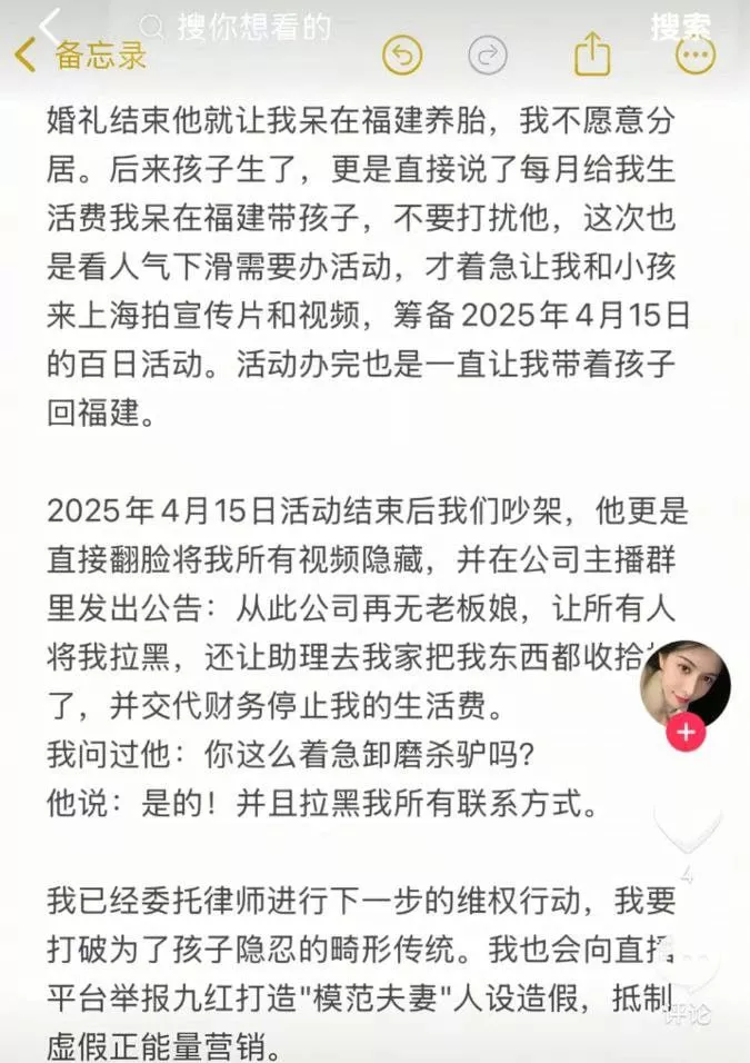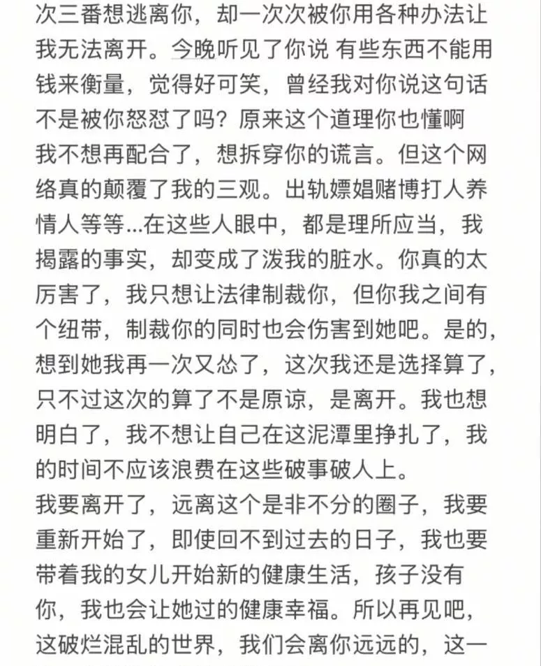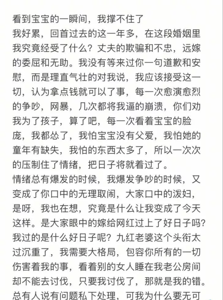 九红妻子长文爆料渣男行为
