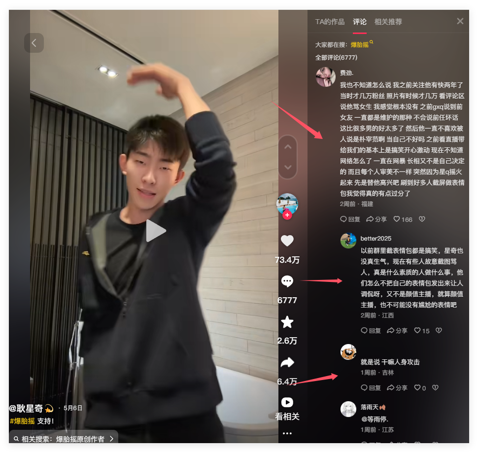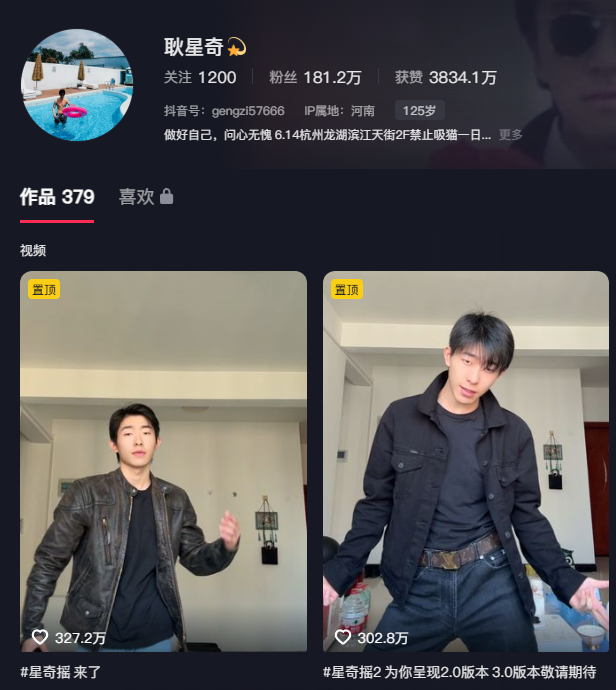 实际上这张图片源自耿星奇自己发布的抖音作品