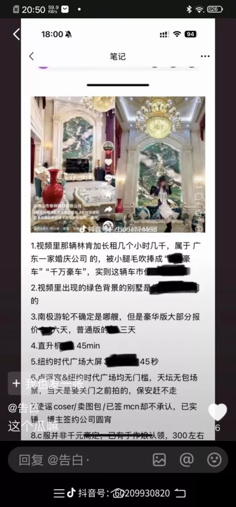 366万粉丝顶级富家大小姐方少,喜欢cosplay喜欢二次元,常展示自己的豪华别墅和出入高端场所,营造富家小姐形象,近日被石锤各种造假后,更是被扒出早期就是一名福利姬,借抖音流量成功上岸后,开始了造假之路