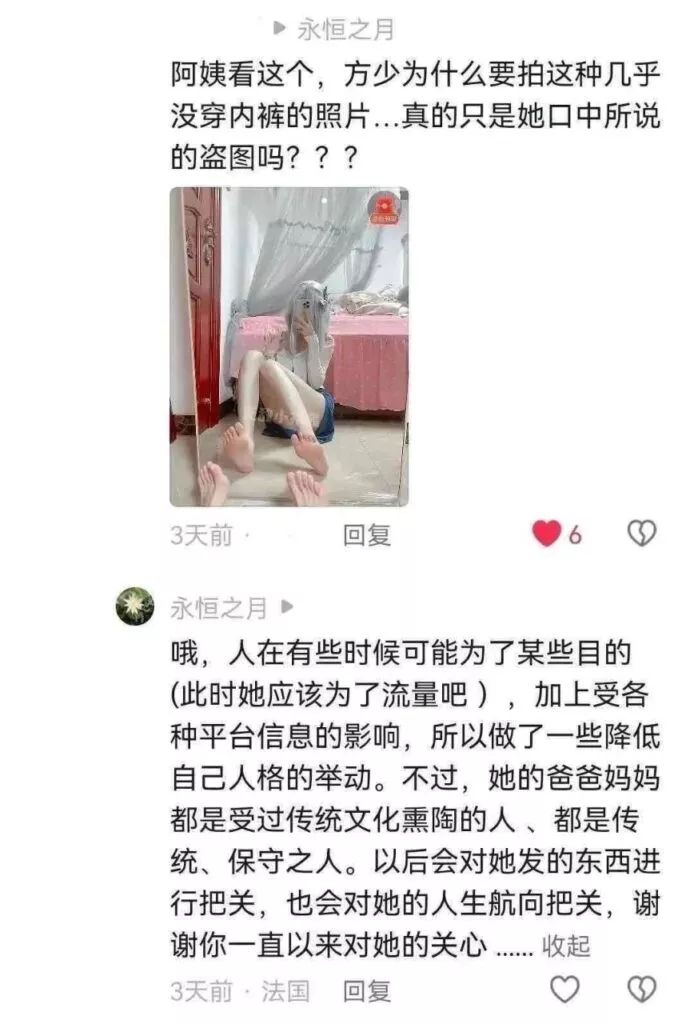被扒出早期身份就是一名福利姬,拍摄各种大尺度照片和举牌捞金