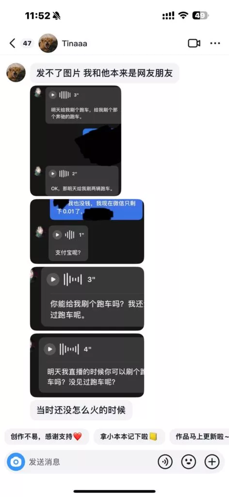 被坑骗的女粉提供的截图,几乎是当儿子来养了,做到这种程度,这位男网红竟然还到处撩搔