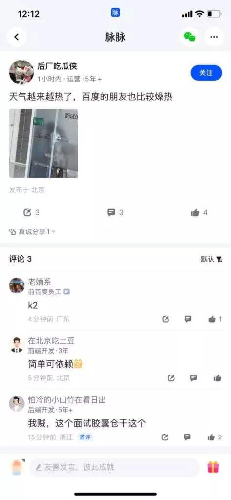 面试看小头?互联网大厂百度大楼有有员工竟在静音舱doi??