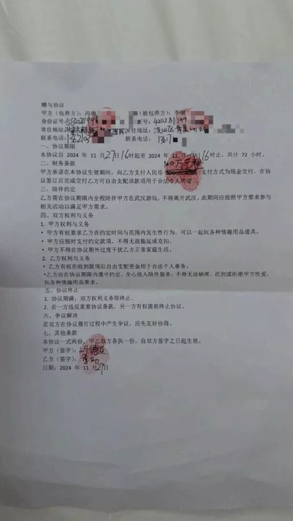 炸了炸了,真的是太逆天了,不愧是京爷,前小米总监冯德兵后宫妻妾成群,还签订了200分包养协议,协议内容堪比法律文书,从无套做i到sm玩法兼职细致入微,简单说,这就是200份包养协议,这才是顶级海王顶级时间管理大师。