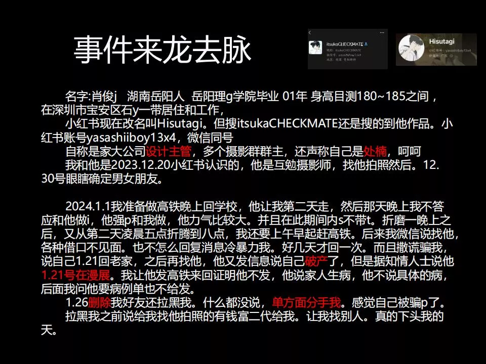 20页PPT曝光小红书渣男摄影师肖俊骗炮pua互免内附原件下载链接
