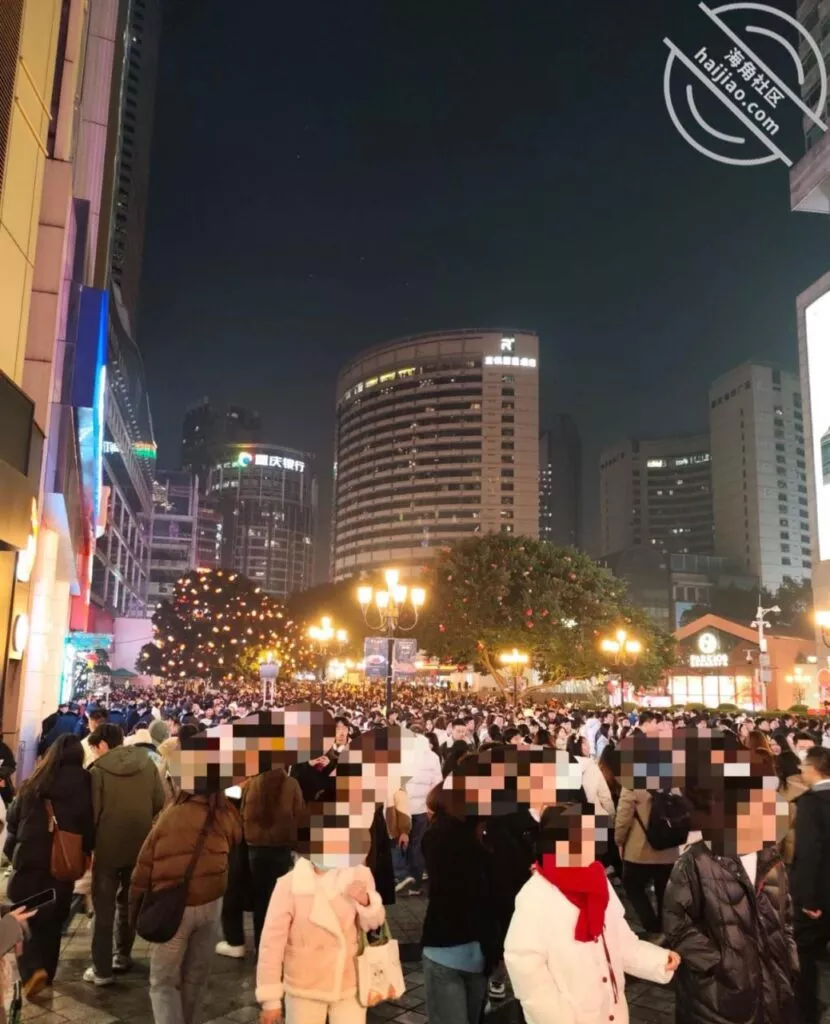 只好跟我去解放碑数倒计时跨年了,后面真的太堵了,酒店也没有提前定好