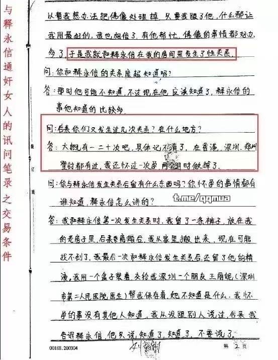 释永信对于自己犯下的罪行供认的笔录