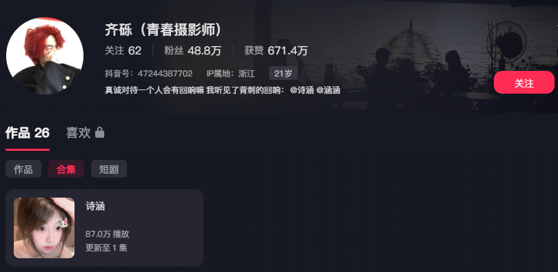 闻着伤心,听者流泪,抖音第一网红cp组合“清纯摄影师”,以真实情侣齐砾和诗涵的日常分享毫无剧本走红,女友诗涵的清纯和男主齐砾的真诚更是让人羡慕,没想到的是,在俩人官宣没多久,女友诗涵却被曝出私底下早已为被一名32岁男子长期包养。