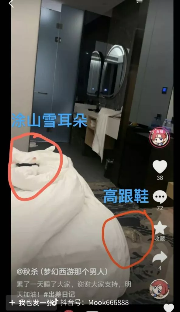 4月21日抖音微博b站百万粉丝coser小娜比,被曝陪睡梦幻西游土豪秋杀。她的个人服装和鞋子出现在土豪秋杀的酒店客房中。