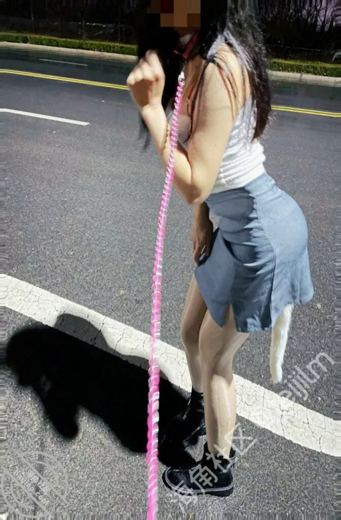 我说我要牵着她逛公园,开始还说好啊,以为是手牵着,结果是拿绳子牵着哈哈,当时就急了不愿意了,说万一有熟人认出来可怎么办啊,或者有熟人看到,好说歹说之下答应我满足一下,毕竟是大龄少女,没有小姑娘放得开,要是小姑娘估计得水流个不停