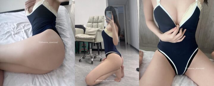 子瑜穿着经典蓝白拼接泳衣的迷人照片(共25张图片)