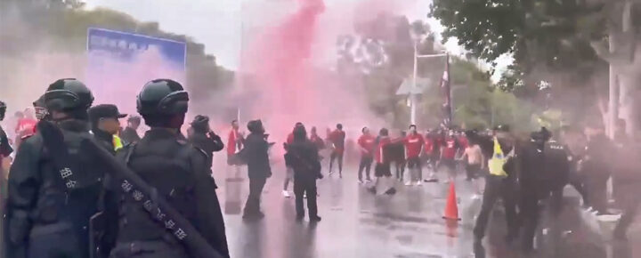 又见足球流氓!河南郑州主场成都蓉城队比赛还未开始球迷先打团