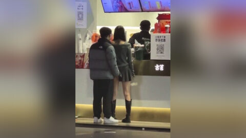 古茗扔茶店又出新瓜,小伙饥渴难耐大庭广众之下乱摸jk女友