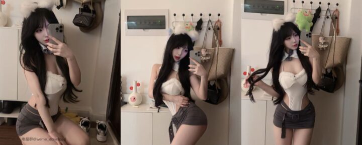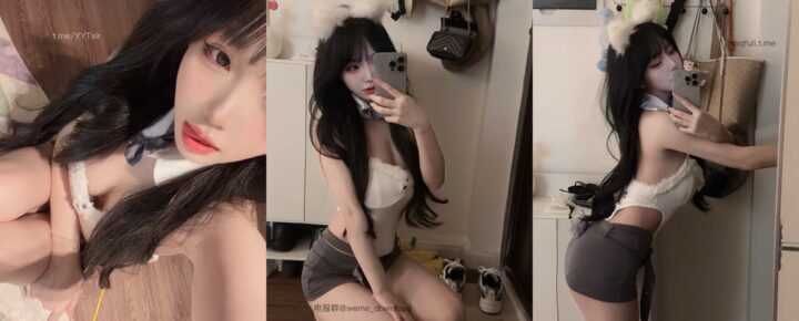 童锣烧:俏皮迷人的白色兔耳背心与性感黑裙(共11张图片)