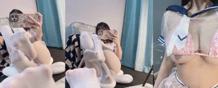 兔宝妮双重魅力:黑丝制服与透视水手服高清写真(共35张图片)